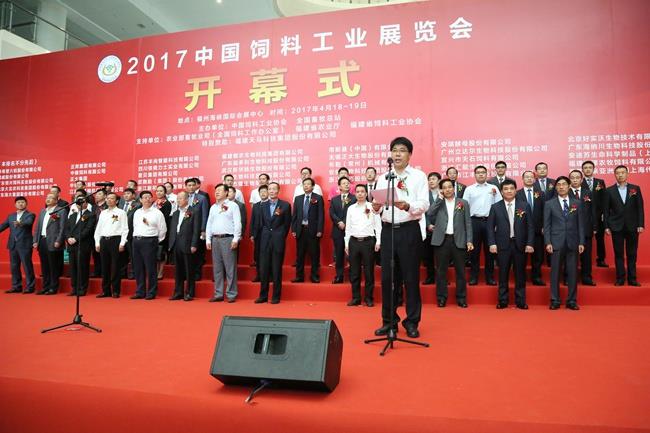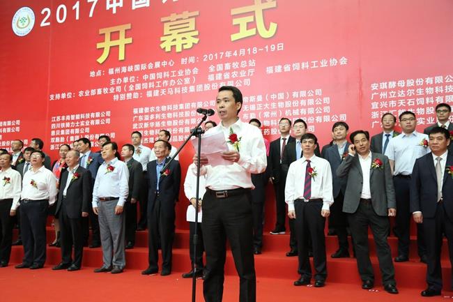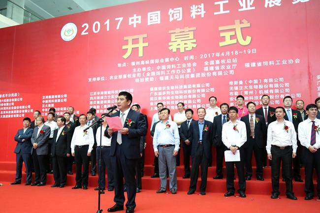 天馬科技訊 4月18日-19日,由中國飼料工業(yè)協(xié)會、全國畜牧總站主辦,福建天馬科技集團股份有限公司(以下簡稱“天馬科技”)特別贊助的行業(yè)盛會——2017中國飼料工業(yè)展覽會暨畜牧業(yè)科技成果推介會在福建省福州海峽國際會展中心隆重舉行。農(nóng)業(yè)部副部長于康震,農(nóng)業(yè)部原副部長、中國飼料工業(yè)協(xié)會顧問高鴻賓,中國飼料工業(yè)協(xié)會會長、中國工程院院士李德發(fā)等領導,以及包括天馬科技、海大集團、大北農(nóng)、新希望六合等上市公司在內(nèi)的近400家國內(nèi)外公司參展和數(shù)萬名客商代表、行業(yè)人士參加展會。中國飼料工業(yè)協(xié)會副會長單位、本屆唯一的特別贊助單位天馬科技,以安全、高效、環(huán)保的特種水產(chǎn)飼料及技術解決方案亮相此次展會,吸引了來自全國各地的客戶,上下游合作伙伴及同行的目光。中國飼料工業(yè)協(xié)會副會長、天馬科技陳慶堂董事長應邀出席展會,并在4月18日舉行的展會開幕式上代表全國飼料企業(yè)致辭。