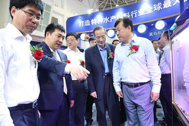上圖為陳慶堂董事長向于康震副部長,農(nóng)業(yè)部原副部長、中國飼料工業(yè)協(xié)會顧問高鴻賓等領導介紹天馬科技產(chǎn)品及相關水產(chǎn)品