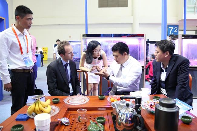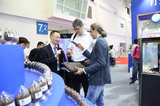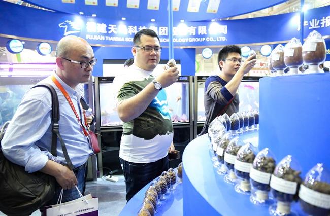 本次展會,天馬科技展館一開館,展臺前就熱鬧非凡,人頭攢動。天馬科技展館設計獨到,簡潔明快的建筑線條,海洋藍配上高效節(jié)能、環(huán)保、安全、舒適的綠色照明體系,充滿活力的鰻魚、石斑魚、大黃魚、甲魚、龜、虹鱒等各類特種水產(chǎn)品形象展示無不彰顯了集團高端、大氣的企業(yè)形象,讓天馬科技展館賺足了眼球,成為全場最“吸睛”的展位。各大媒體記者,各大參展商、供應商、客戶,以及觀眾紛紛在天馬科技展館駐足流連,并不時向現(xiàn)場的天馬科技工作人員咨詢產(chǎn)品相關情況。